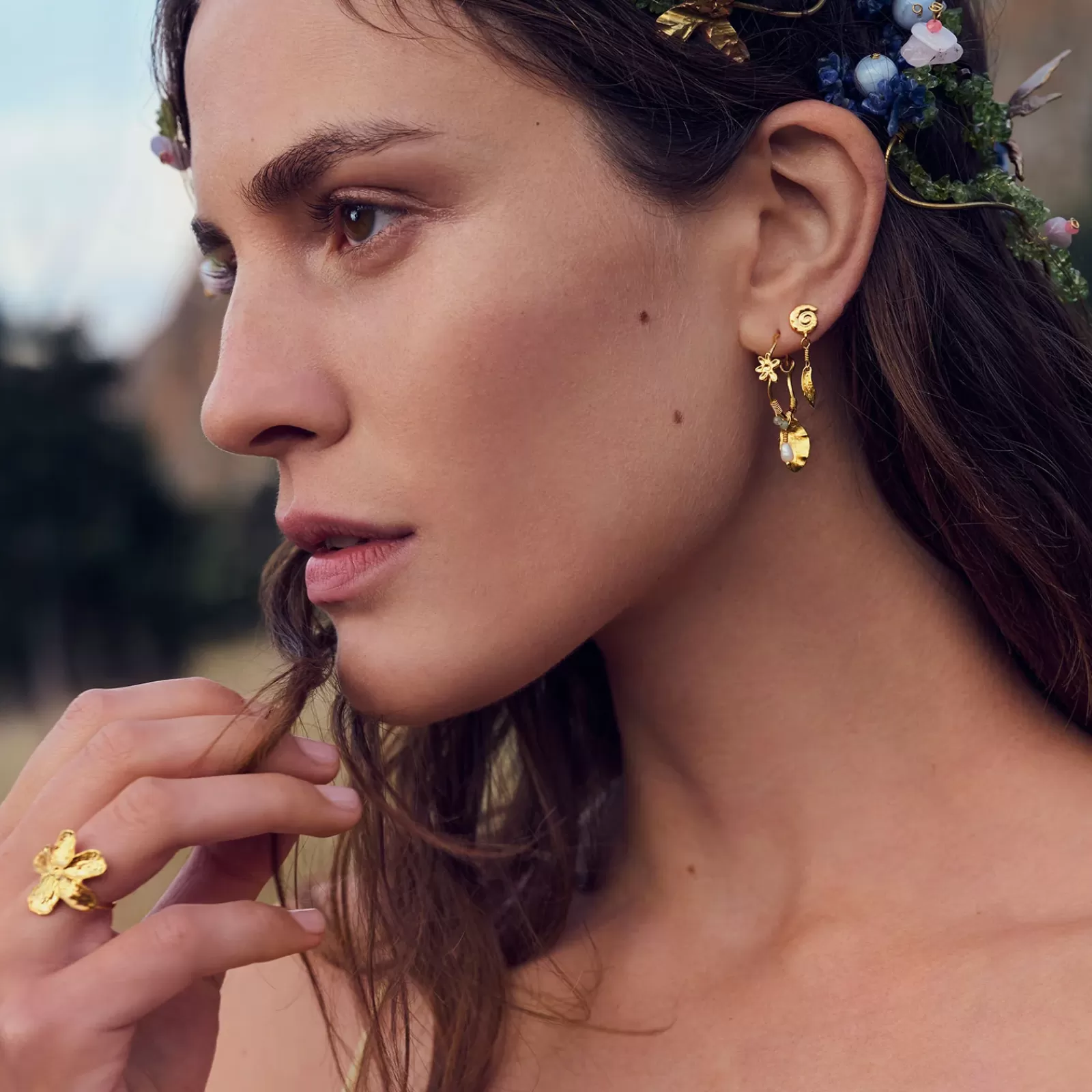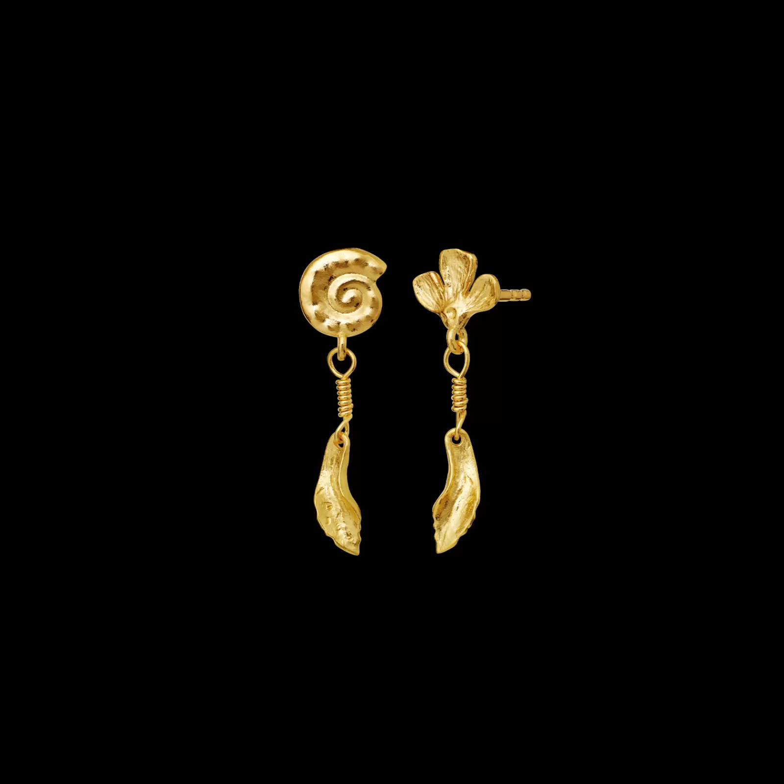 Mange af livets meningsfulde symboler udspringer fra naturen. De forenes i sommerlig treenighed i Carmel-øreringene, hvor et sneglehus, en kløver og spæde blade danser i harmoni. Midsommer er blandt de mest magiske og energifyldte tidspunkter på året. Det er en tid beriget med liv og lys, og er en uendelig strøm af ren naturkraft. Maanestens high summer 24 kollektion Midsummer Magic, er inspireret af dette specielle, naturlige øjeblik, og hylder midsommerritualet, hvor nye drømme og visioner manifesteres.Materialer: Genanvendt sterlingsølv (925) belagt med 18 karat guld.Længde: 2,3 cmBredde: 0,7 cm