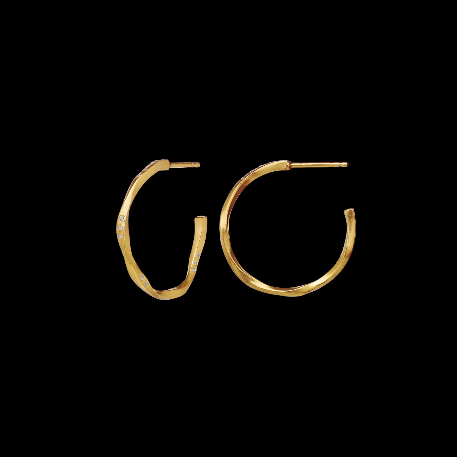 Et twistet design med skinnende zirkoner nyfortolker den klassiske hoop-ørering. Echo-øreringene findes i tre forskellige størrelser og er i Maanestens A/W 23-kollektion skabt som en hyldest til naturens organiske former, en af kollektionens store inspirationskilder.