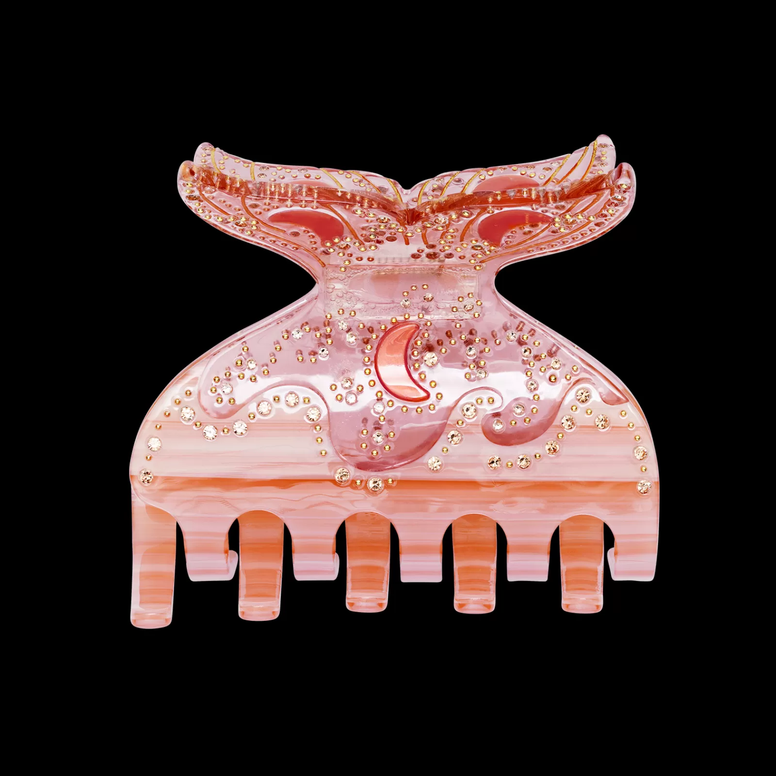 Ligesom den store hval bryder en rolig havoverflade med et dramatisk haleflip, tilføjer Finn hårspændet sit eget element af drama, når det griber dine sommerlokker og glimter som vanddråber fra rhinsten mellem hårstråene.