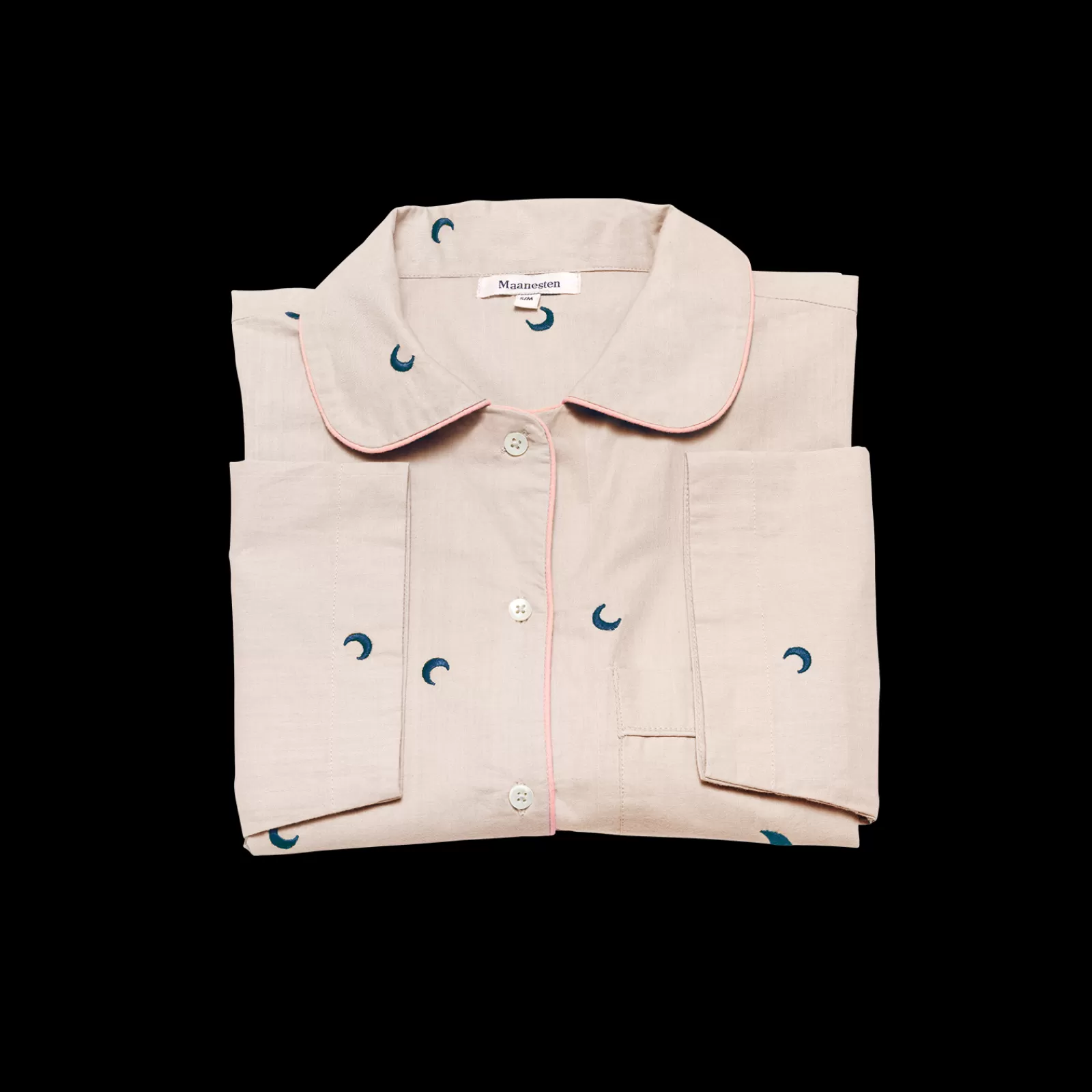 Den fine Moe Morning Shirt med broderede halvmåner og smukke kontrastfarver.