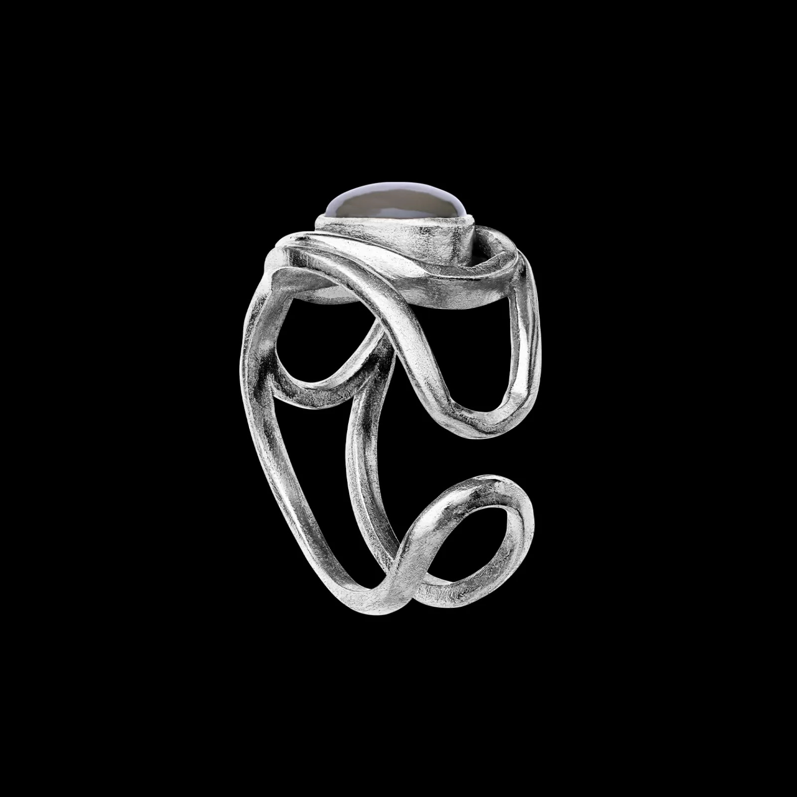 Den smukkeste grå månesten er centrum i Naomi-ringen. Stenen er også kendt som nymånestenen. Det siges, at den indeholder nymånens mystiske kraft, hvor alting har potentiale til at blive bedre.