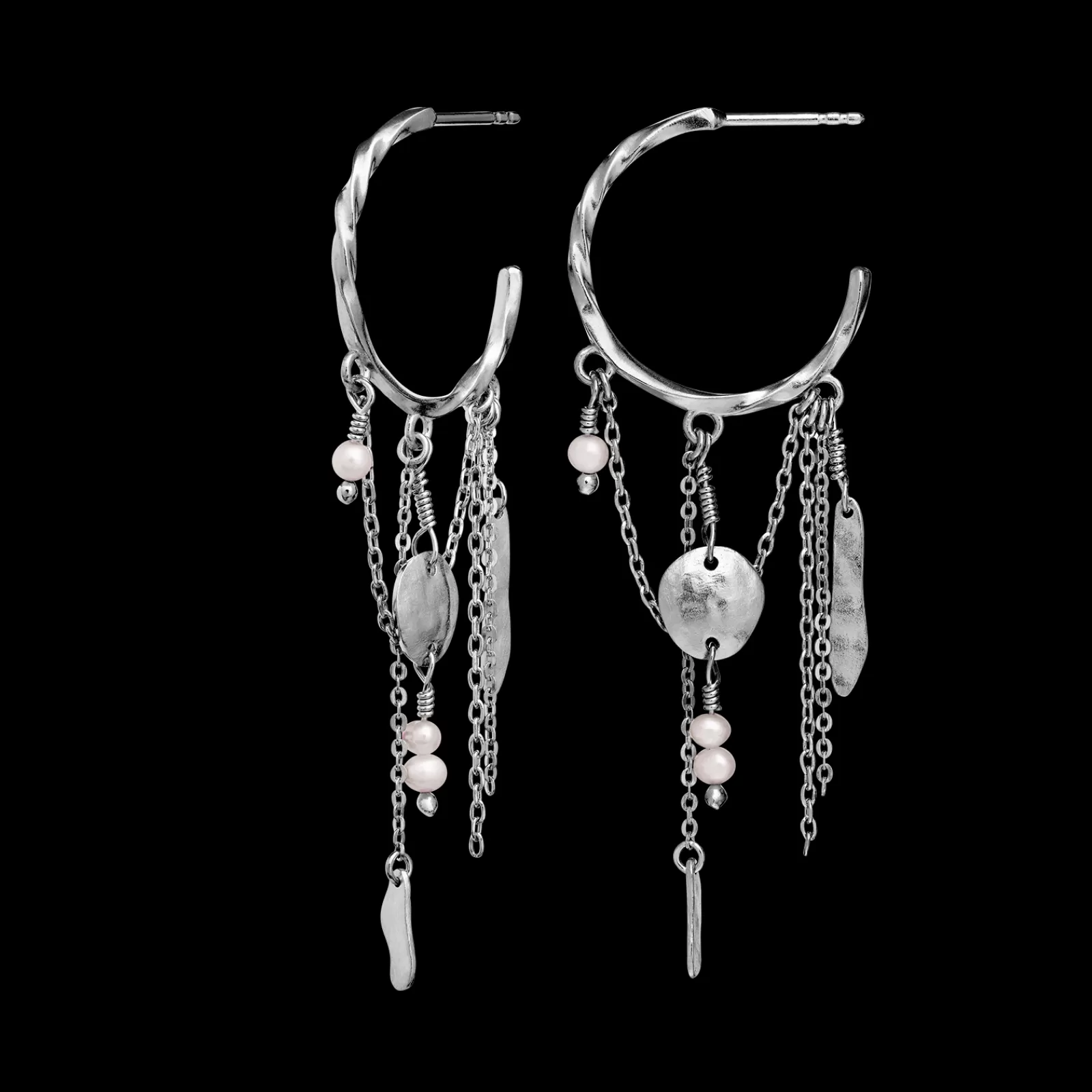 Dryppende perledråber i legende kæder udgør Notus Earrings, der er opkaldt efter den græske gud for efterårets storme, tågen og regnen. Øreringene hylder det liv og skønhed, som vandet bringer.